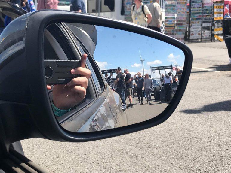 I soon realised that the amount of work that goes into running these cars is on a completely different level. The engine is completely stripped down to a bare crankshaft and block at the end of every run and to add to this the rules only allow 90 minutes turn around time. With a lot of guidance from the team I ran through the routine once on Friday and discussed some ways to speed up for the real thing. Including gathering a selection of 5 torque wrenches for my tool tray alone! I was also nominated to drive the tow car which leads to a very strange view in the mirror.